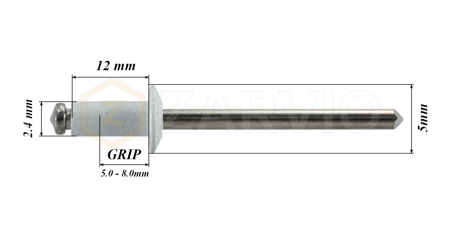 2.4mm x 12mm White Blind Rivets ALU/STEEL Dome Head Pop Rivets – Aluminium Body Steel Mandrel