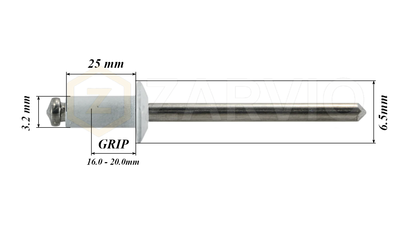 3.2mm x 25mm White Blind Rivets ALU/STEEL Dome Head Pop Rivets – Aluminium Body Steel Mandrel