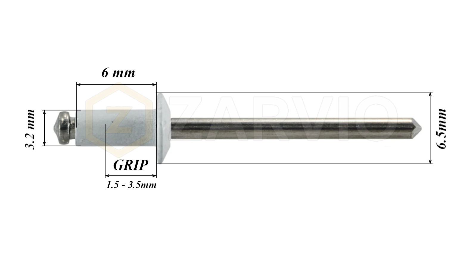 3.2mm x 6mm White Blind Rivets ALU/STEEL Dome Head Pop Rivets – Aluminium Body Steel Mandrel