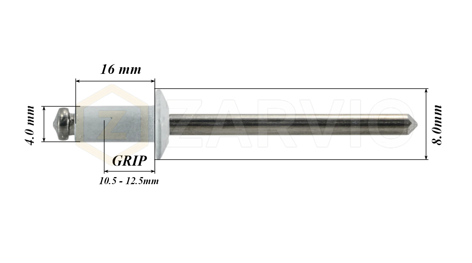 4.0mm x 16mm White Blind Rivets ALU/STEEL Dome Head Pop Rivets – Aluminium Body Steel Mandrel