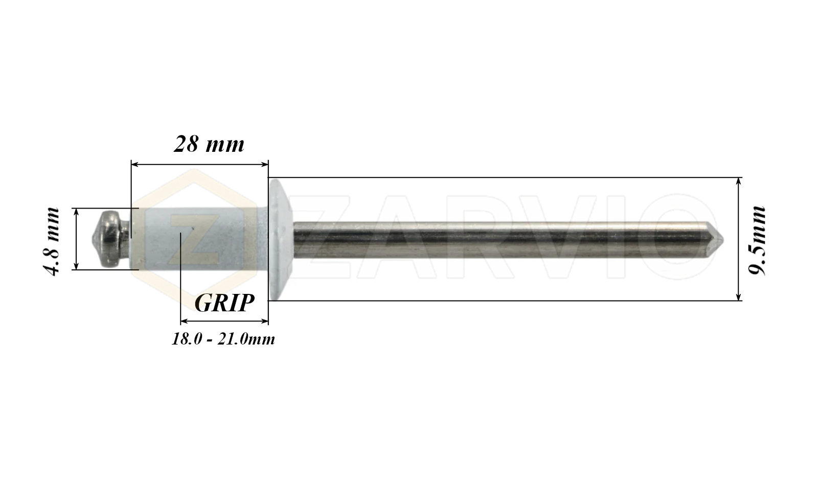 4.8mm x 28mm White Blind Rivets ALU/STEEL Dome Head Pop Rivets – Aluminium Body Steel Mandrel