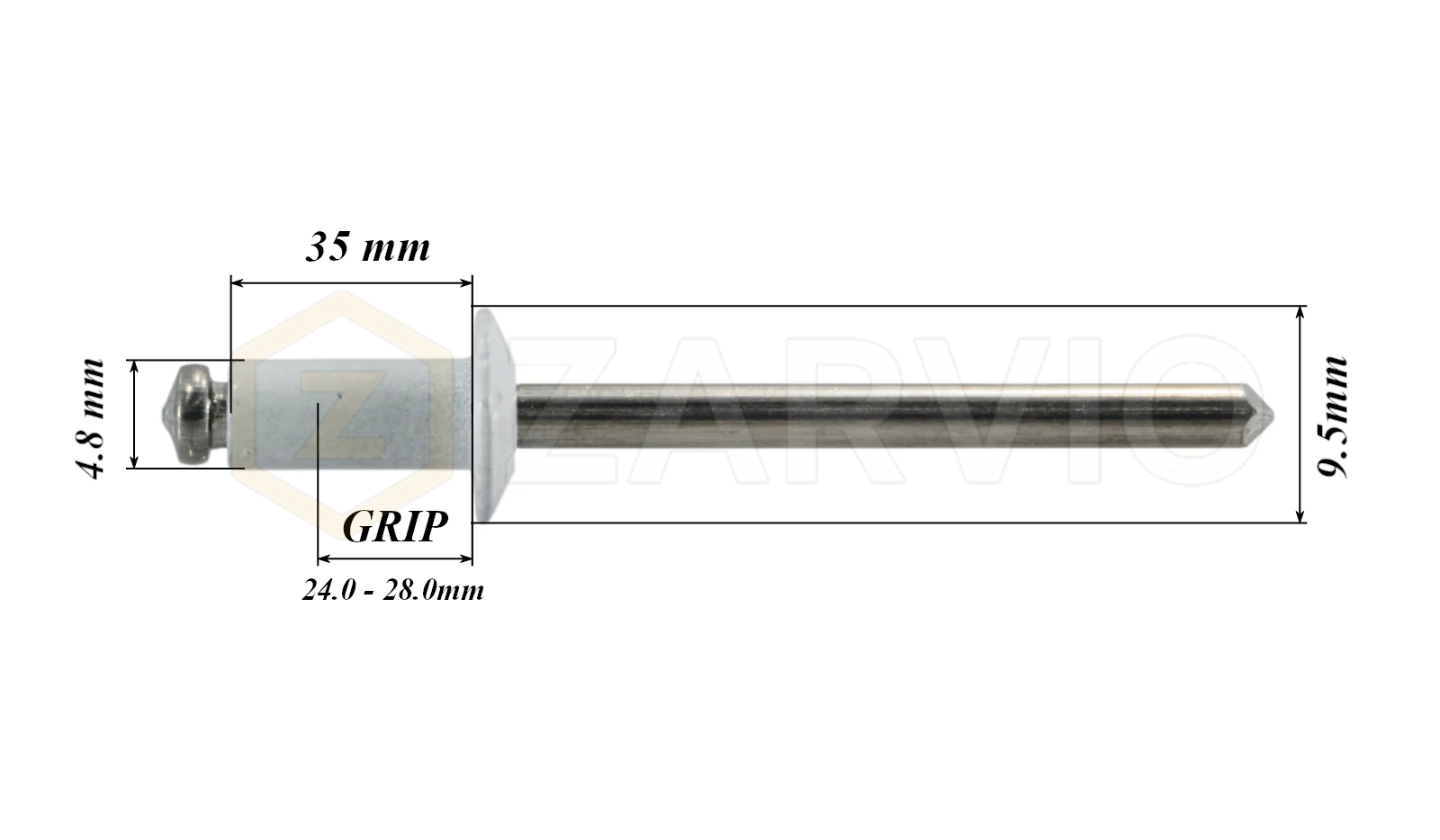 4.8mm x 35mm White Blind Rivets ALU/STEEL Dome Head Pop Rivets – Aluminium Body Steel Mandrel