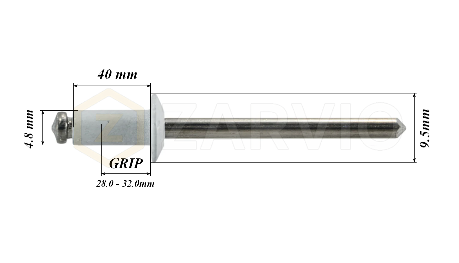 4.8mm x 40mm White Blind Rivets ALU/STEEL Dome Head Pop Rivets – Aluminium Body Steel Mandrel