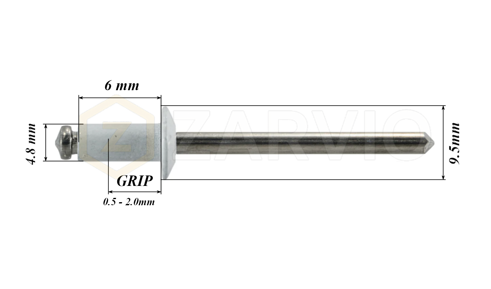 4.8mm x 6mm White Blind Rivets ALU/STEEL Dome Head Pop Rivets – Aluminium Body Steel Mandrel